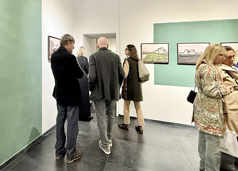 Vitali at the Galleria Forni, taken in various Italian locations: The Ascent in Matera, Stone Tales in the Itria Valley, Vanishing Venice in Venice, They Have Gone in the Lower Piave River, and Yellow Gaze in Chianti.
