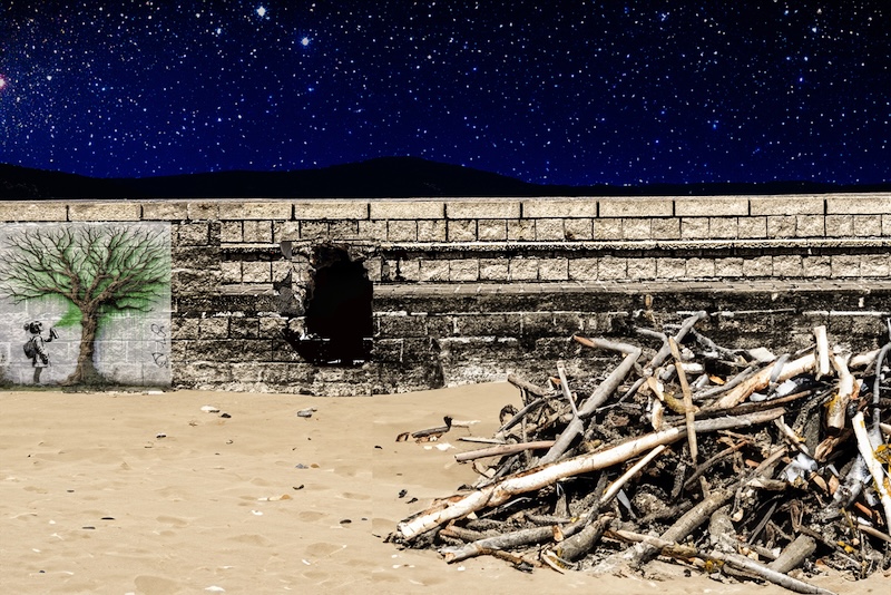 Un approdo in un luogo remoto. In un gioco di citazioni a layers sovrapposti, l’uomo universale osserva da un altro tempo la terra e i problemi che affliggono l’Umanità: guerra, violenza, deforestazione, inquinamento, migrazioni… Pur a fronte di un futuro non possibile, un anelito di speranza e di giustizia scuote lo scenario. Alla fine si ripiomba nella drammaticità di una società annientata da un’involuzione culturale e sociale distopica. In un viaggio circolare si ritorna ad una desolazione angosciante in cui sembra che nessun vero progresso sia realmente attuabile.